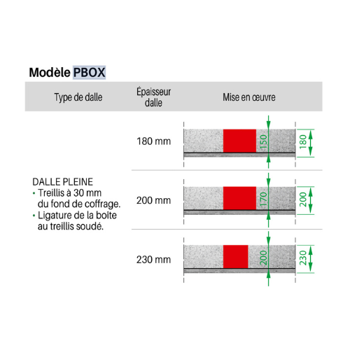 Les boites de réservation permettent de créer des réservations d'incorporation en dalle béton armé.