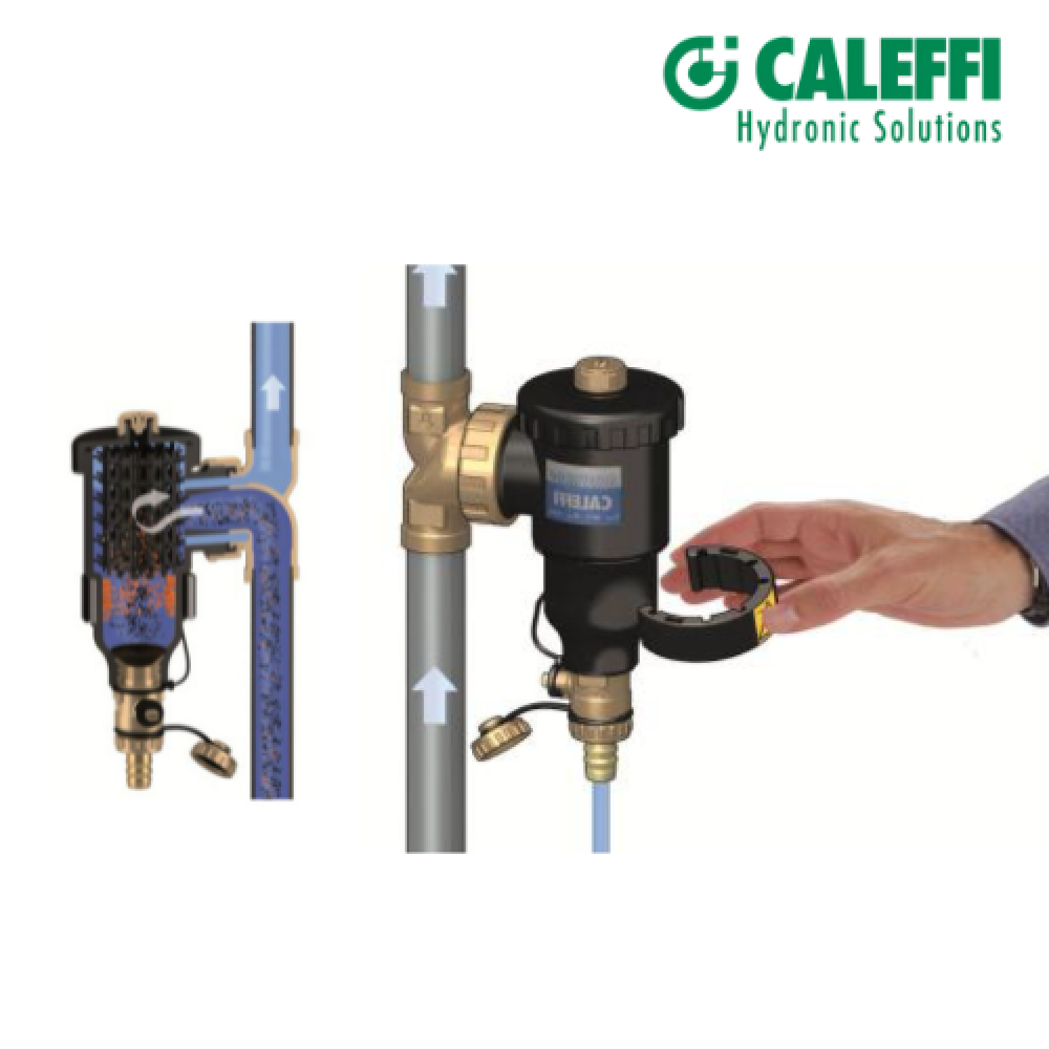 Le pot de décantation Caleffi POTDECH sépare les impuretés présentes dans l’eau du réseau et les boues éventuellement créées par oxydo-réduction, pour permettre une évacuation efficace de ces particules (y compris les particules métalliques jusqu’à 5µm).