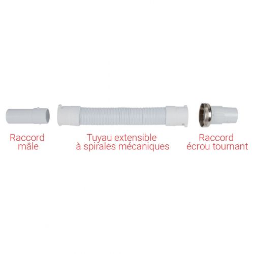 Emboîter le tuyau extensible à spirales mécaniques avec le raccord écrou tournant : pousser, tourner.
