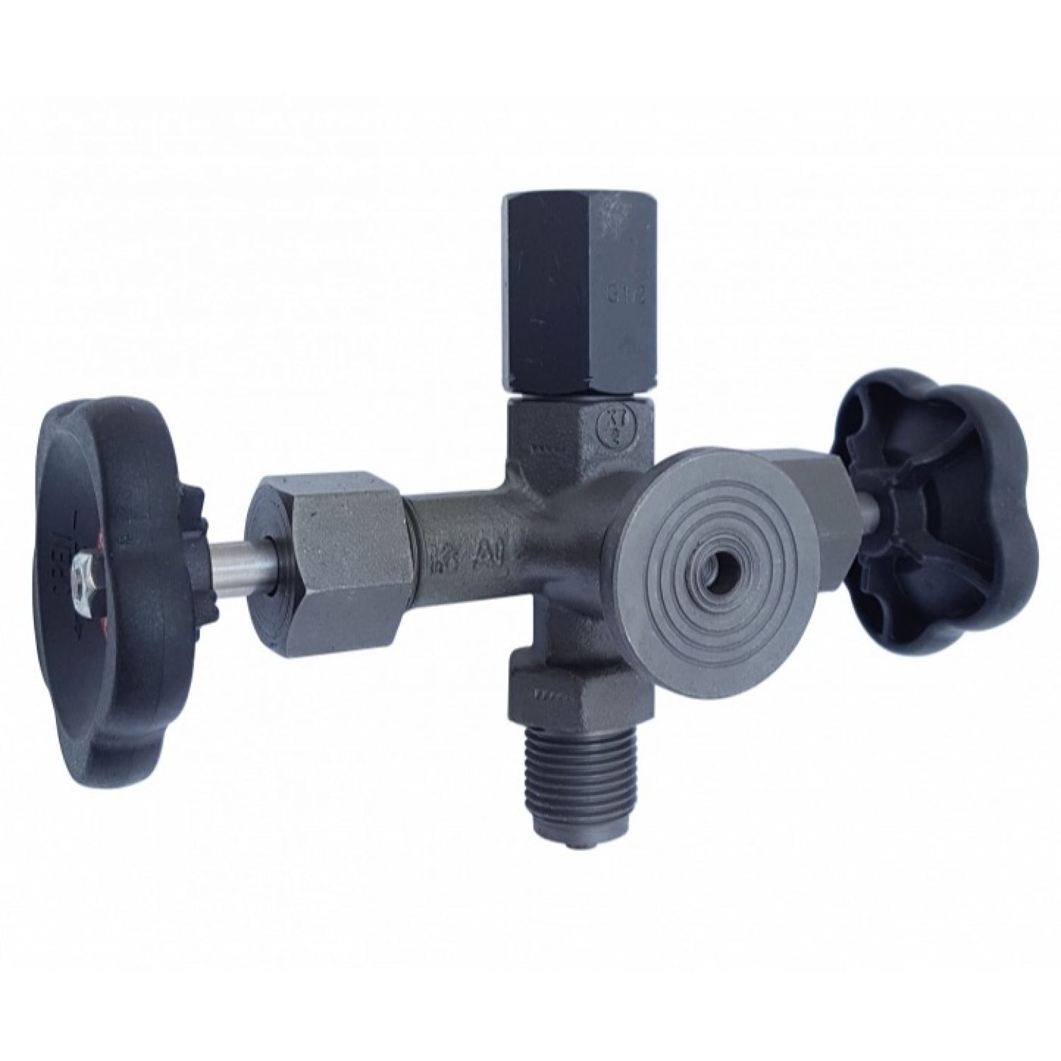 Robinet à double pointeau inox avec bride de contrôle Ø 40 x 5 - Corps acier