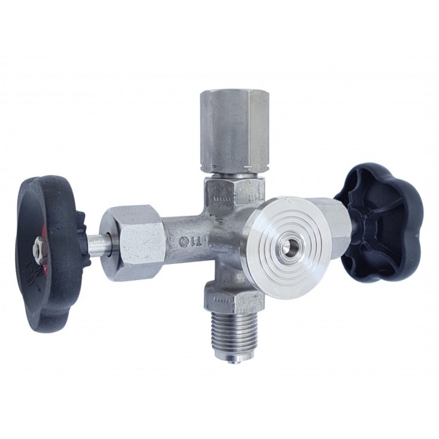 Robinet à double pointeau inox avec bride de contrôle Ø 40 x 5 - Corps inox