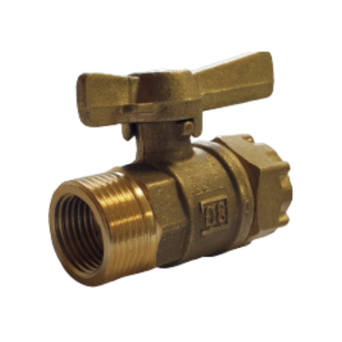 Robinet Avant Compteur Droit Double Filetage - Mâle 1/2 - Femelle 3/4 - Sortie Ecrou Prisonnier 3/4"