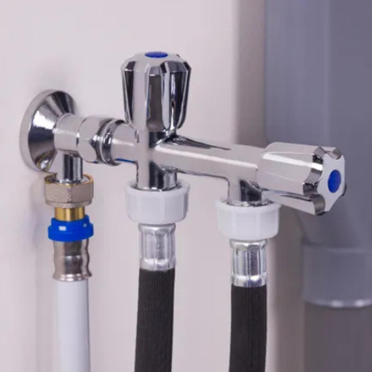 Robinet d'arrêt double voie droit machine à laver + lave-vaisselle