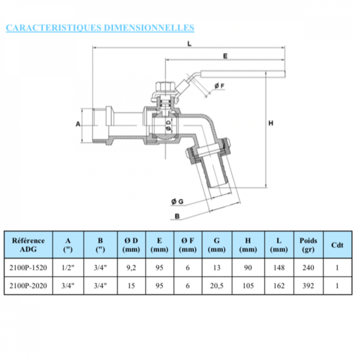 - Température: -10°C (hors Gel) + 150°C (à pression nulle) Filetage mâle: BSPT conique