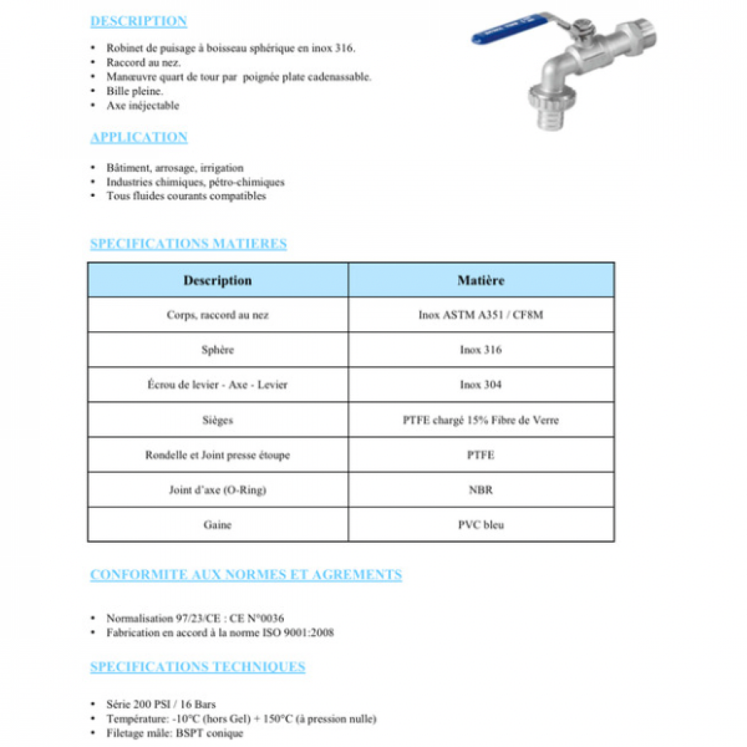 - Robinet de puisage à boisseau sphérique en inox 316.