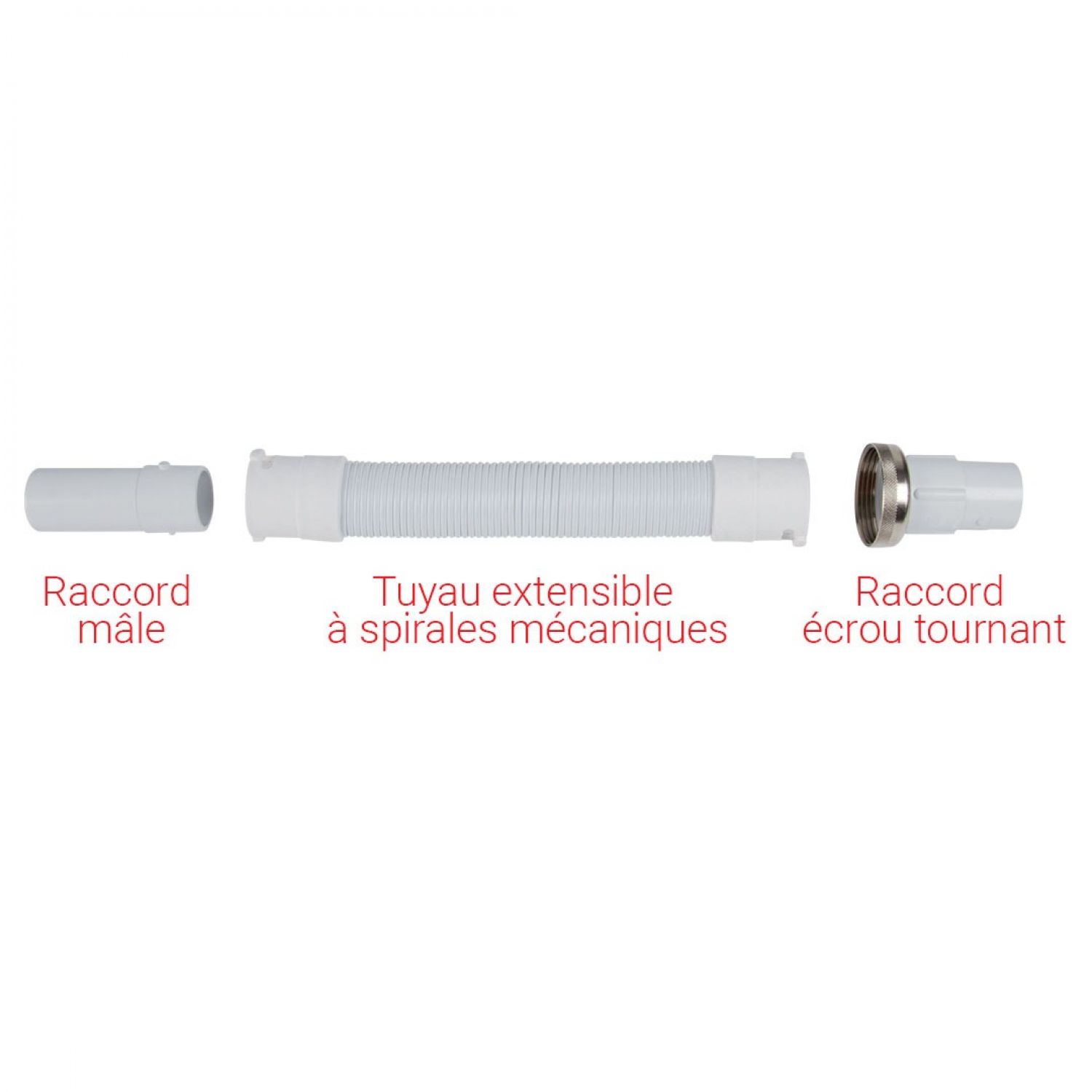 Il fonctionne par l'emboîtement de différents raccords qui s'adaptent à ses extrémités.