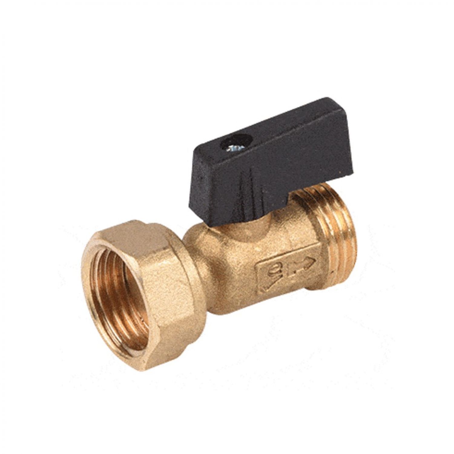 Vanne monobloc à sphère FM1/2" avec écrou tournant,  poignée  papillon en plastique noir, corps en laiton CW617N, sablé.