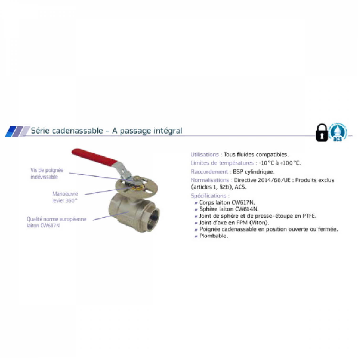 Vanne À Sphère Laiton Femelle x Femelle - Cadenassable