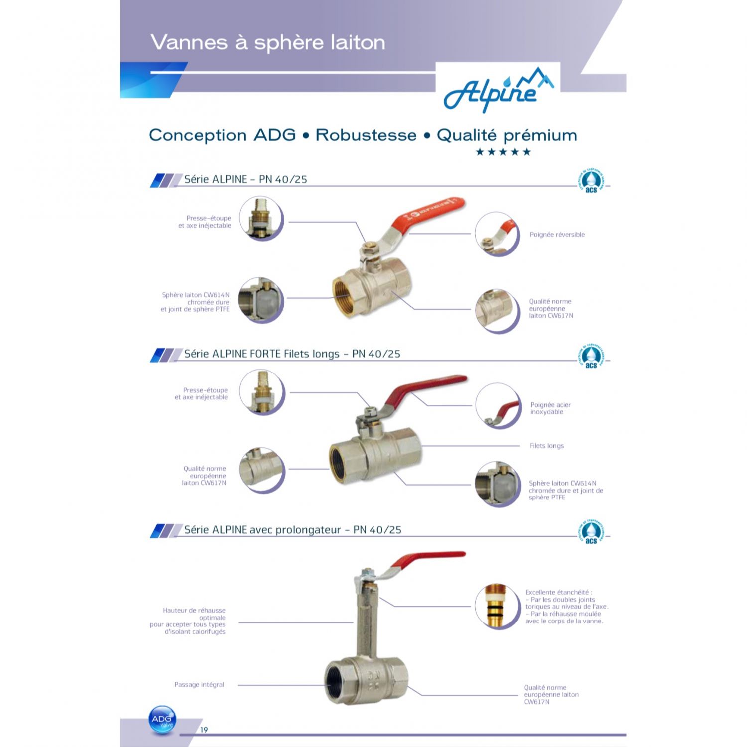 - Corps laiton CW617N matricé à chaud nickelé (sauf filetage).