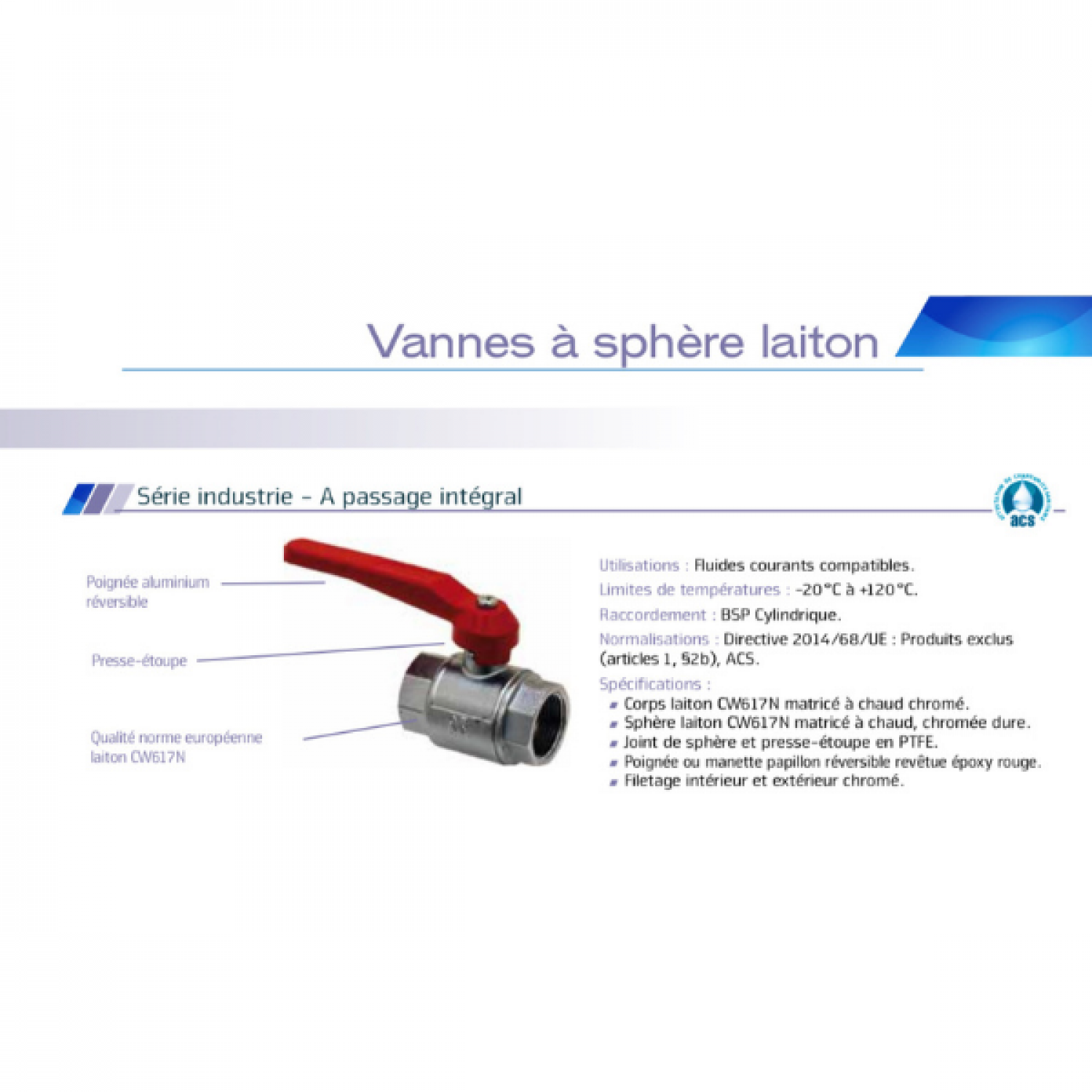 Sphère laiton CW617N-DW matricé à chaud, chromée dure.