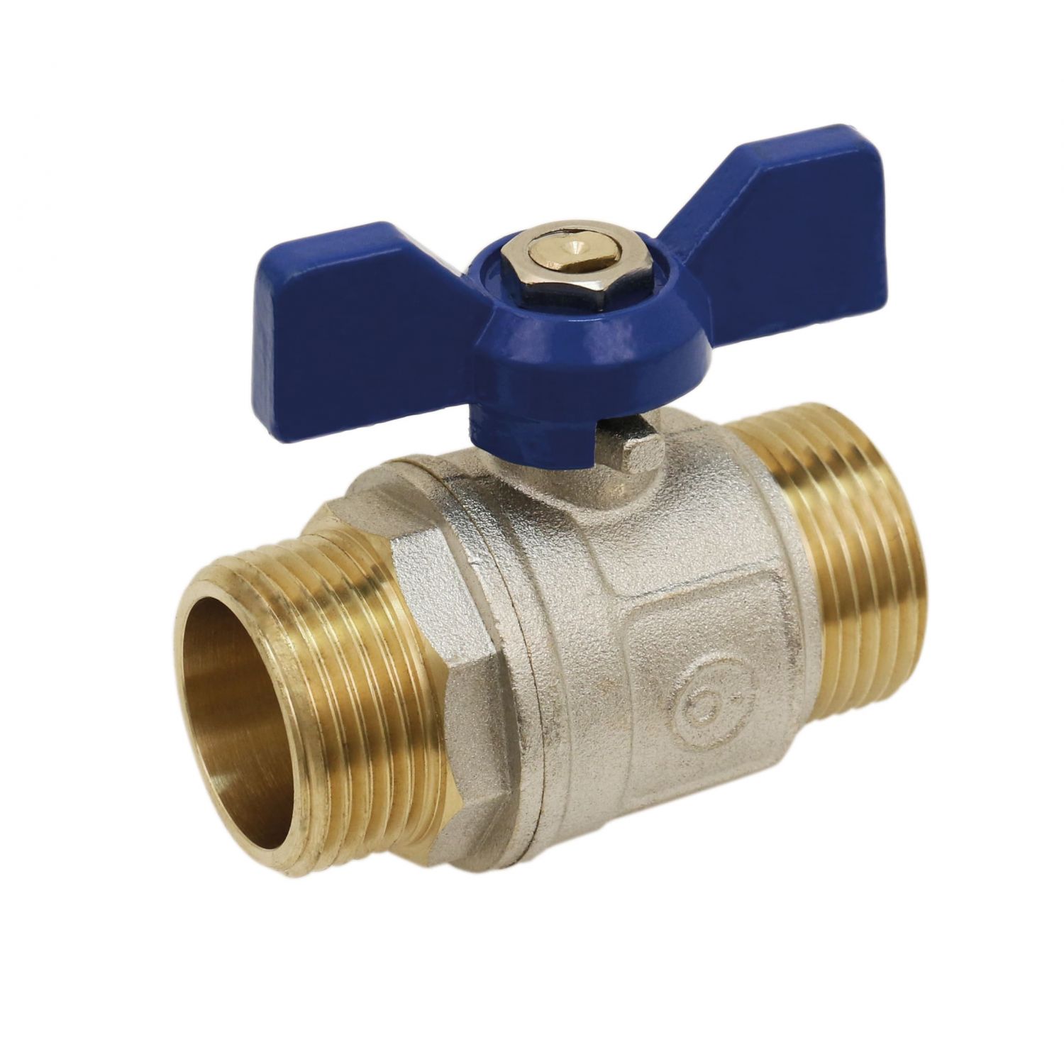 Vanne À Sphère Mâle x Mâle Laiton - Manette Papillon Bleue