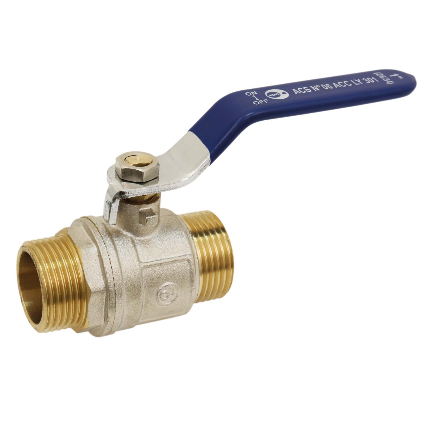 Vanne À Sphère Mâle x Mâle Laiton - Poignée Acier Bleue