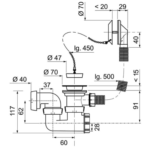 - Bouchon Ø47 mm avec chaînette L.450 mm.